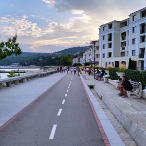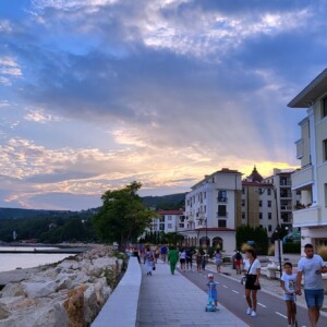 Ако желаете да усетите вкуса на морето и полъха на бриза, може да слезете на крайморската алея, по която се стига до „Двореца“, а планът е по-късно да свърже Белия град с отдалечения на 10 км курортен комплекс „Албена“. По пътя може да разгледате безброй магазинчета за сувенири, да хапнете сладолед или прясна риба, или пък да си купите натурално лавандулово масло от фермерския пазар, който посещава алеята всяка събота.