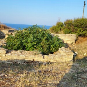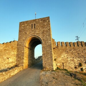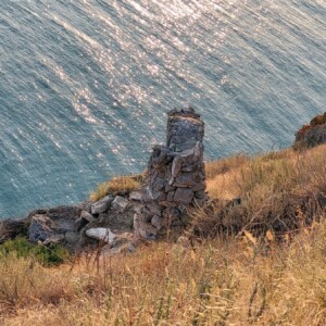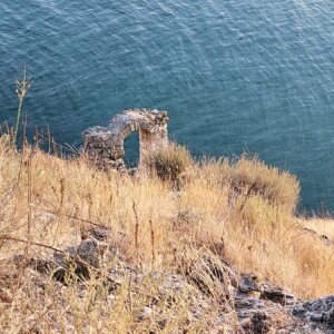Портата, която се издига на леко възвишение, бележи входа на някогашния вътрешен град, където отново наблюдаваме останки от сгради. Навлизайки по-навътре, стигате до покрита с гладки камъни пътека, откъдето се изправяте над морската шир, оставаща там долу.