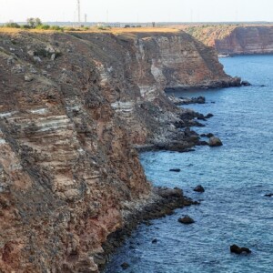 Още преди входа на комплекса ви посрещат внушителни 70-метрови керемиденочервени скали от сарматски варовик, които в основата си са ритмично обливани от тъмносините вълни, и приканват за запомнящи се снимки.