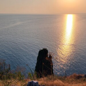 Идва време за кулминацията на разходката. По това време огненочервеното слънце вече се снишава към хоризонта, за да „целуне“ тъмната синева на морето.