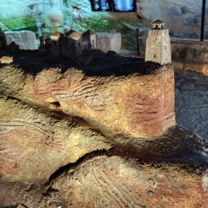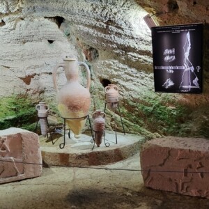 След кратко спускане по пътеката ще се натъкнете на просторен ресторант-тераса с гледка към морето. Досами него пък е полускрит входът на пещерата-музей. Там са поместени ценни археологически находки като златни монети, керамични съдове и други предмети от времето на траките до късното средновековие, 14-и век – когато Калиакра достига своя разцвет, под управлението на Карвунското княжество, с владетели Балик и Добротица. Ценен експонат е макет на крепостта във вида ѝ от древността. Тук ще получите и печат в книжката със 100-те национални туристически обекта, един от които е именно твърдината на нос Калиакра.