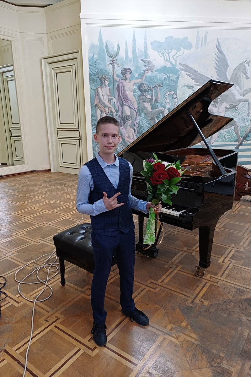 Да, той се казва Павел Найденов, на 13 години, родом от Добрич и понастоящем ученик в средното училище по изкуства „Св. Климент Охридски“ със засилено обучение по музика, в класа на Галина Гешева.