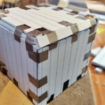 Следващата стъпка е да прикрепим топлоизолиращите панели към всяка страна на кутията, като оставим страната с входа последна. Важно е панелите да са плътно прилепнали към кутията. За това ни помага залепващата лента. Не препоръчвам използването на лепила, защото те имат силна миризма, която котките няма да харесат.