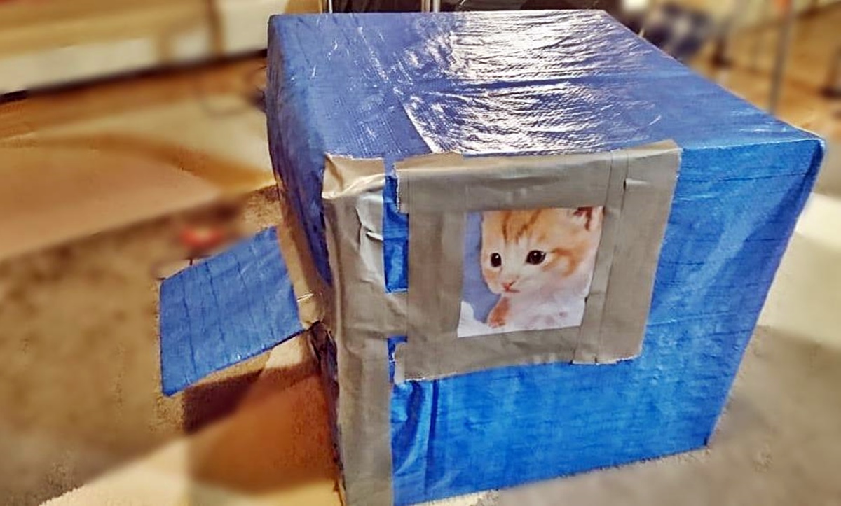 Следващата стъпка е да прикрепим топлоизолиращите панели към всяка страна на кутията, като оставим страната с входа последна. Важно е панелите да са плътно прилепнали към кутията. За това ни помага залепващата лента. Не препоръчвам използването на лепила, защото те имат силна миризма, която котките няма да харесат.